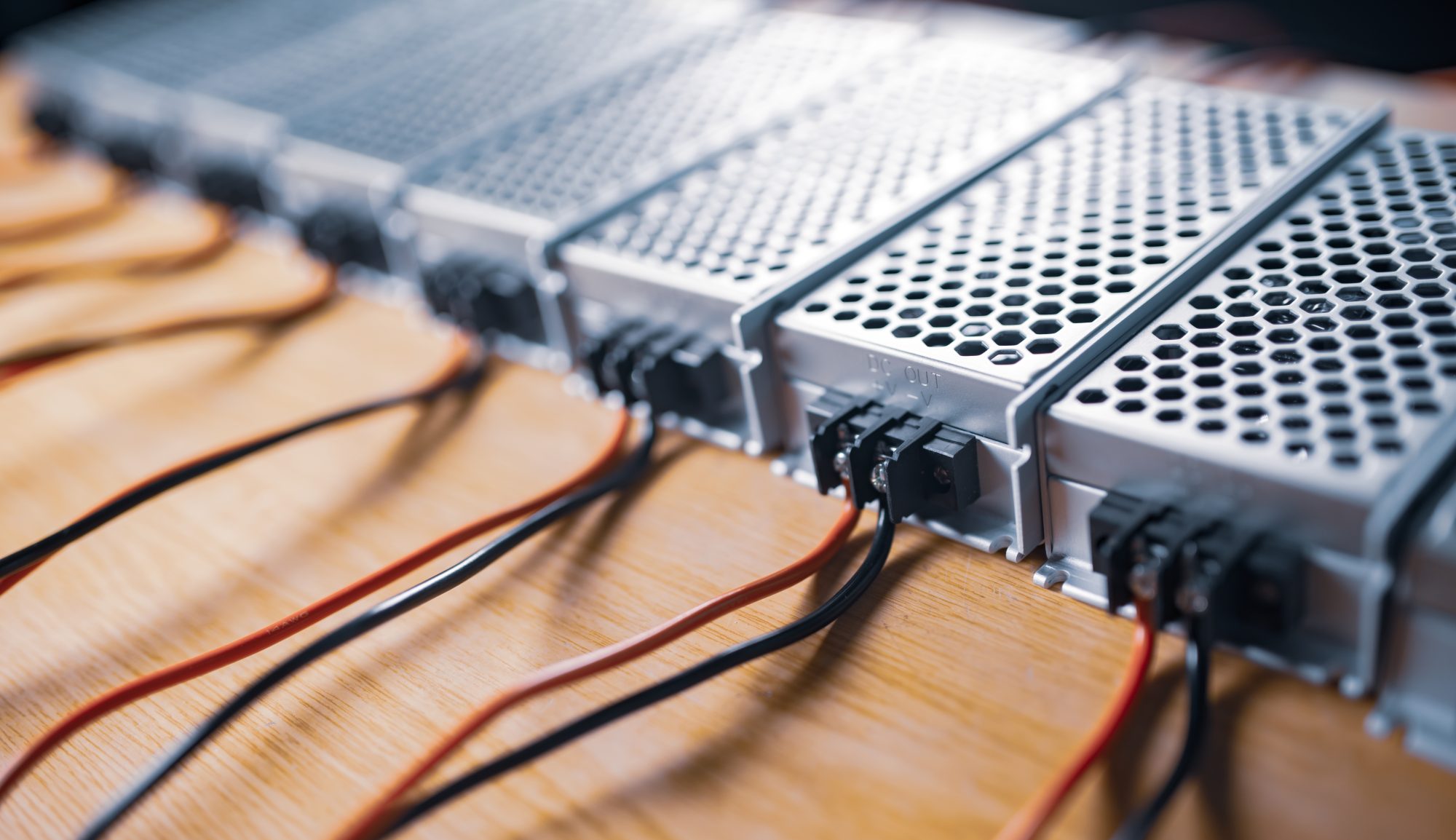 Close up of the metal mesh cases of power supply