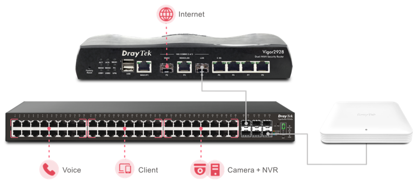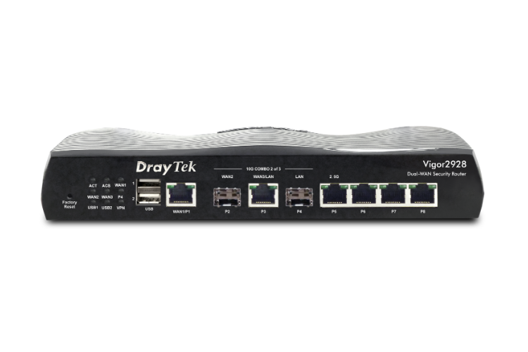 De DrayTek Vigor 2928 serie is een krachtige dual WAN VPN router met high-speed 10 Gigabit connectiviteit, ontworpen voor organisaties die hoge prestaties en maximale betrouwbaarheid eisen. Met ondersteuning voor VPN, QoS, policy based routing en geavanceerde beveiligingsfuncties biedt de Vigor 2928 een toekomstbestendige netwerkoplossing voor moderne bedrijfsnetwerken.
