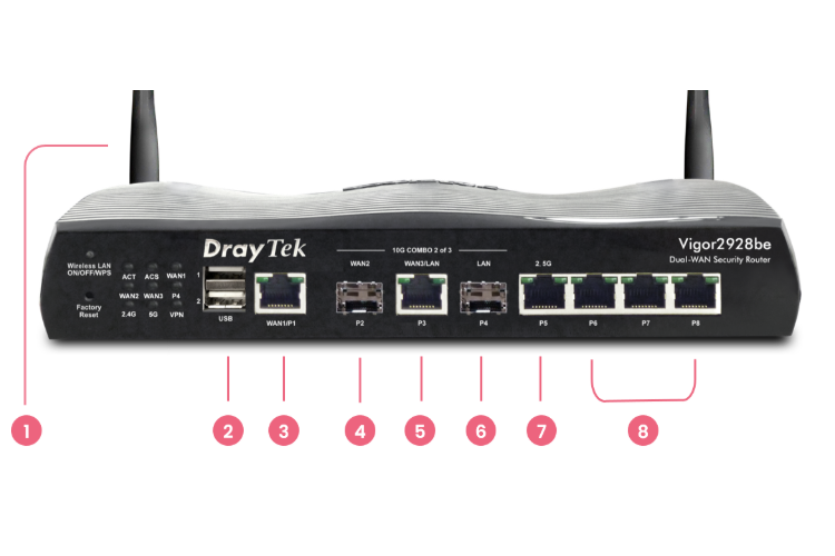De Vigor 2928be is uitgerust met Wi-Fi 7 (802.11be) en biedt geavanceerde technologieën zoals Multi Link Operation (MLO) en Multiple Resource Units (MRU) voor maximale prestaties en efficiëntie.